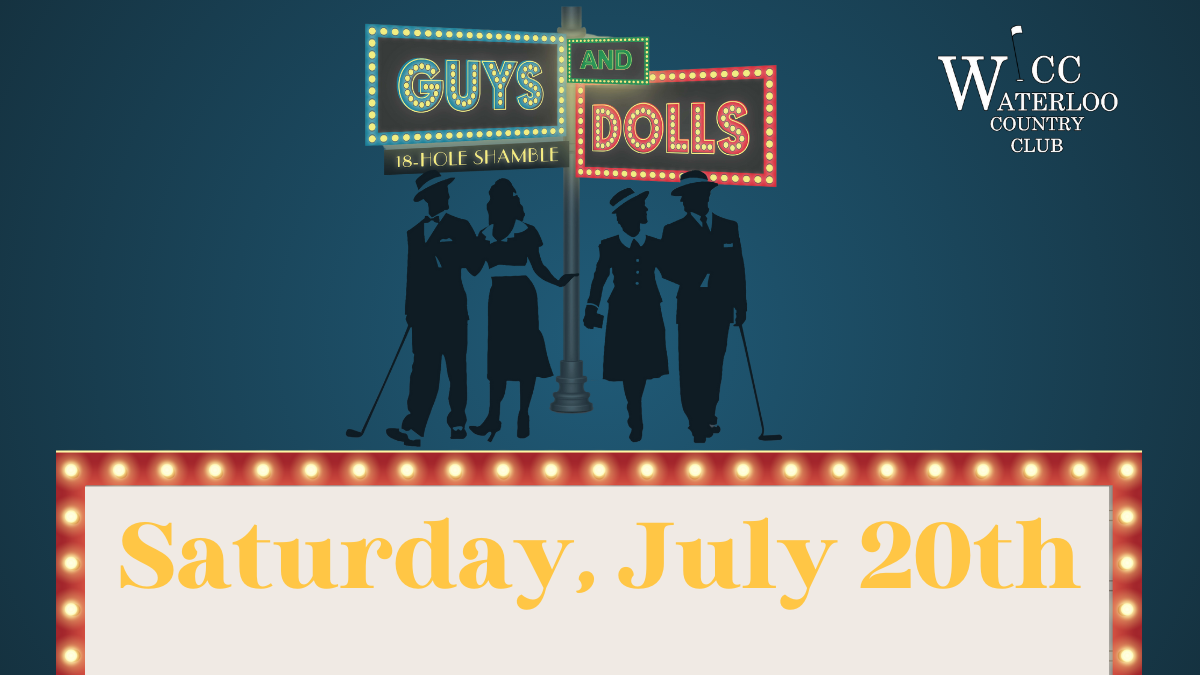 Guys & Dolls Shamble July 20th 8:00AM Shotgun Start Cocktails: 5:30PM & Dinner 6:30PM on Sunday, July 21st $25 Per Couple for Prize Money Contact: Karen Pottoff (618) 719-4750, Email: pottoff2@gmail.com Committee: Frank & Sandy Williams • John & Karen